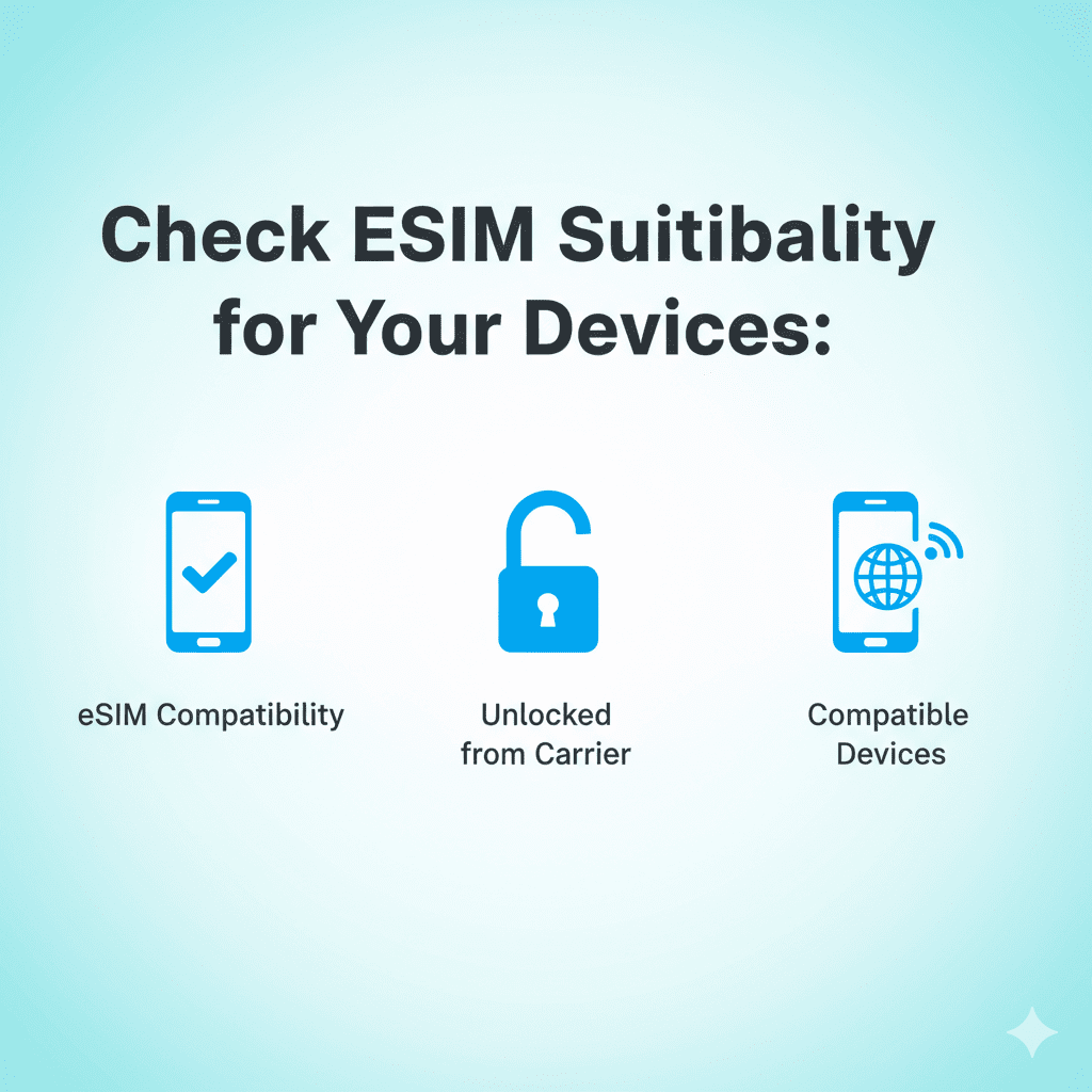 - Unlocked device: Locked phones block third-party eSIMs — unlock via your carrier (usually free if paid off).